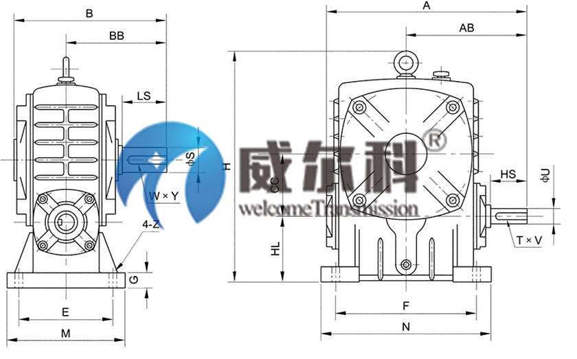 WPA減速機(jī)由裝在剛性的密封箱體中一對(duì)或者幾對(duì)相嚙合的齒輪、蝸輪、蝸桿等所組成,在機(jī)器中作為一個(gè)獨(dú)立的部件。常用在原動(dòng)機(jī)和工作機(jī)之間作為減速的傳動(dòng)裝置。相反,在少數(shù)場(chǎng)合下,例如離心式壓縮機(jī)等需要應(yīng)用增速的傳動(dòng)裝置,這類傳動(dòng)裝置稱為增速機(jī)。減速機(jī)的由于結(jié)構(gòu)緊湊、效率較離(齒輪減速機(jī))、傳遞運(yùn)動(dòng)準(zhǔn)確可靠,使用維護(hù)并可成批發(fā)生產(chǎn),故在化工廠、機(jī)械機(jī)、工程機(jī)構(gòu)領(lǐng)域應(yīng)用很廣泛。減速機(jī)的類型很多,一般可以分為齒輪(圓柱齒輪、圓錐齒輪)減速機(jī)、蝸輪減速機(jī)等類型。按照減速機(jī)的級(jí)數(shù)不同,又分為單級(jí)、兩級(jí)和三級(jí)減速機(jī)。另外有立式和臥式之分。減速機(jī)主要由齒輪(或蝸輪)、軸、軸承和箱殼等所組成,而齒輪(或蝸輪)、軸、軸承等由箱殼來(lái)支承。因此,箱殼應(yīng)具有足夠的剛度,以避免受載后變形從而影響傳動(dòng)質(zhì)量以及工作性能。正規(guī)減速機(jī)廠家生產(chǎn)的減速機(jī)都是采用鑄剛鑄成的。